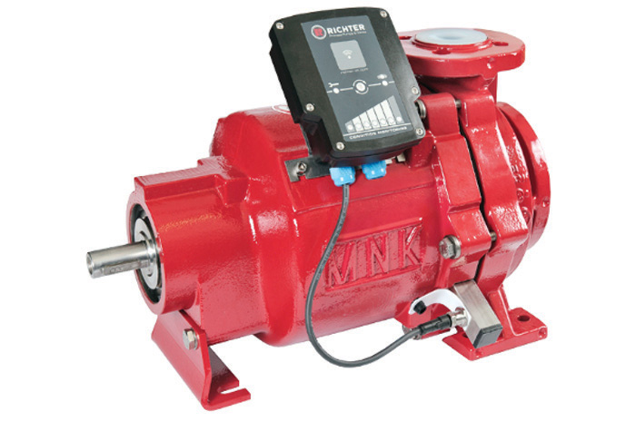 Magnetic drive and mechanical seal chemical process pumps of space-saving, close-coupled design, PFA/PTFE and PE-lined