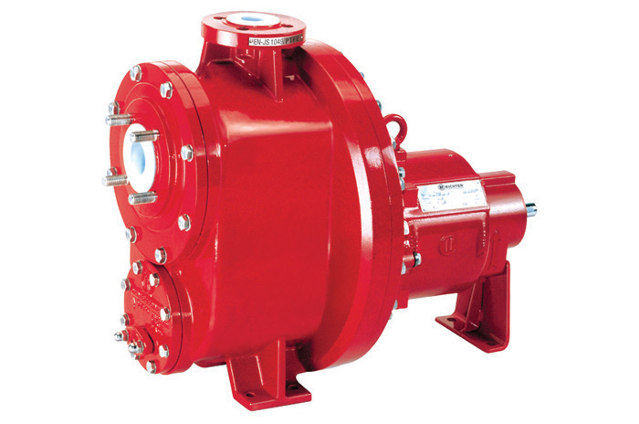 Self-priming chemical process centrifugal pumps with magnetic drive or mechanical seal, PFA/PTFE-lined